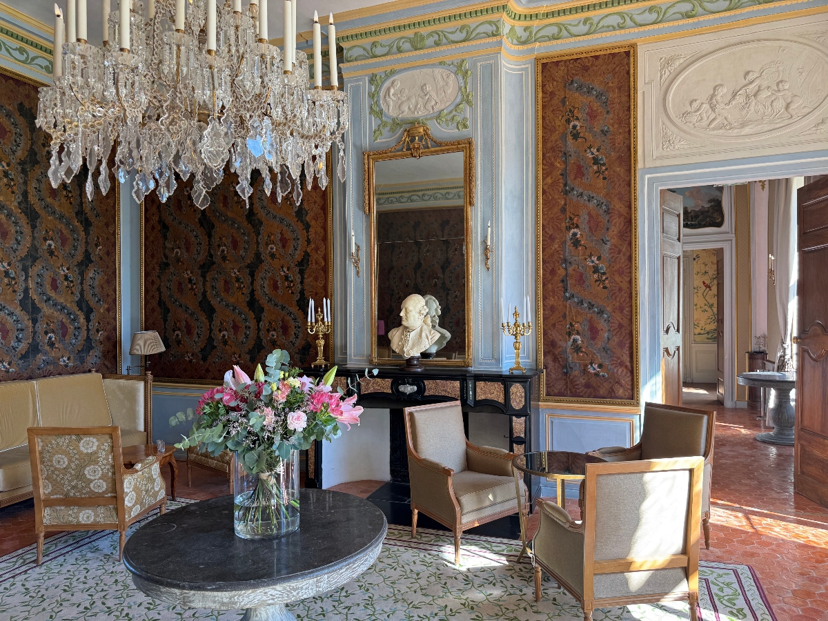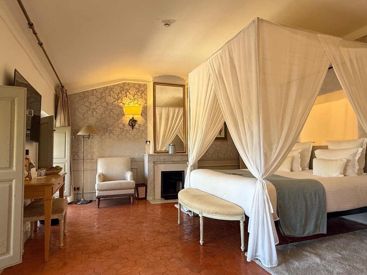 Most of the common areas are on the château’s first floor, known as the heritage floor — besides the salon, you’ll find a library, a music room, a billiards room and an adorable playroom filled with children’s toys. I especially loved the restored surfaces, such as walls covered with hand-painted Chinese paper and rare Italian leathers, plus the original sculptures and frescoes that in many cases date back to the 1700s. The original terracotta tomettes (Provençal tiles) underfoot were pried out, cleaned and relaid one by one. It’s like stepping into a chapter of French history that’s been frozen in time for modern enjoyment.
