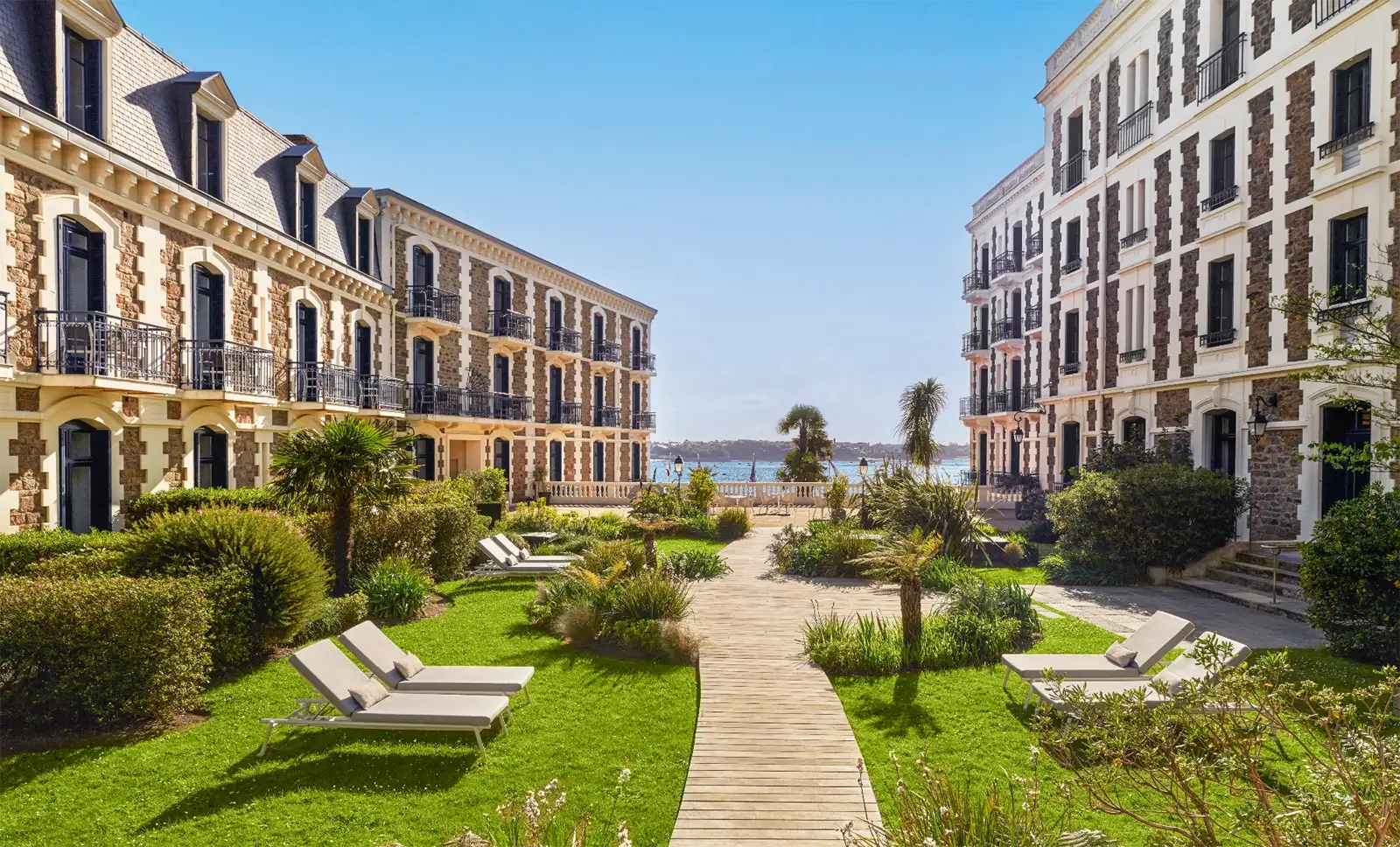 Presiding over the blue-green waves that give this part of Brittany its Emerald Coast nickname, Le Grand Hôtel Dinard has been the jewel of its namesake town since it was built in the 1850s. Although it opened just ahead of the period known as the Belle Époque, the property embodied the same sense of optimism and bon vivant spirit that would come to define the era. It was Dinard’s very first true hotel, meant to welcome royalty in style (which, at the time, took the form of a modest 20-room structure just steps from the sea for bathing).