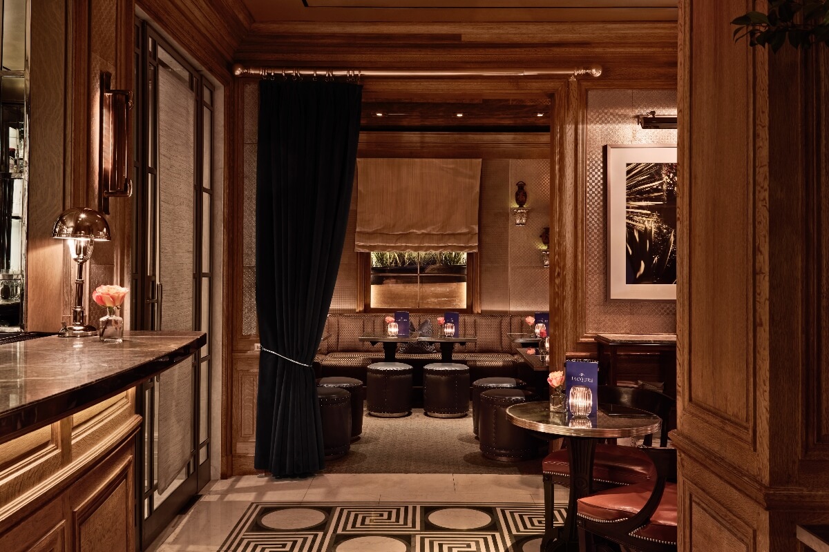 For cocktails or a nightcap, Jacques Bar offers a clubby atmosphere with burnished wood paneling and vintage mirrored ceilings. If you’re peckish, Majorelle’s lunch menu is also available here, or you can nibble on snacks like olives and crudité as you sip a well-crafted cocktail or a glass from the excellent wine list.